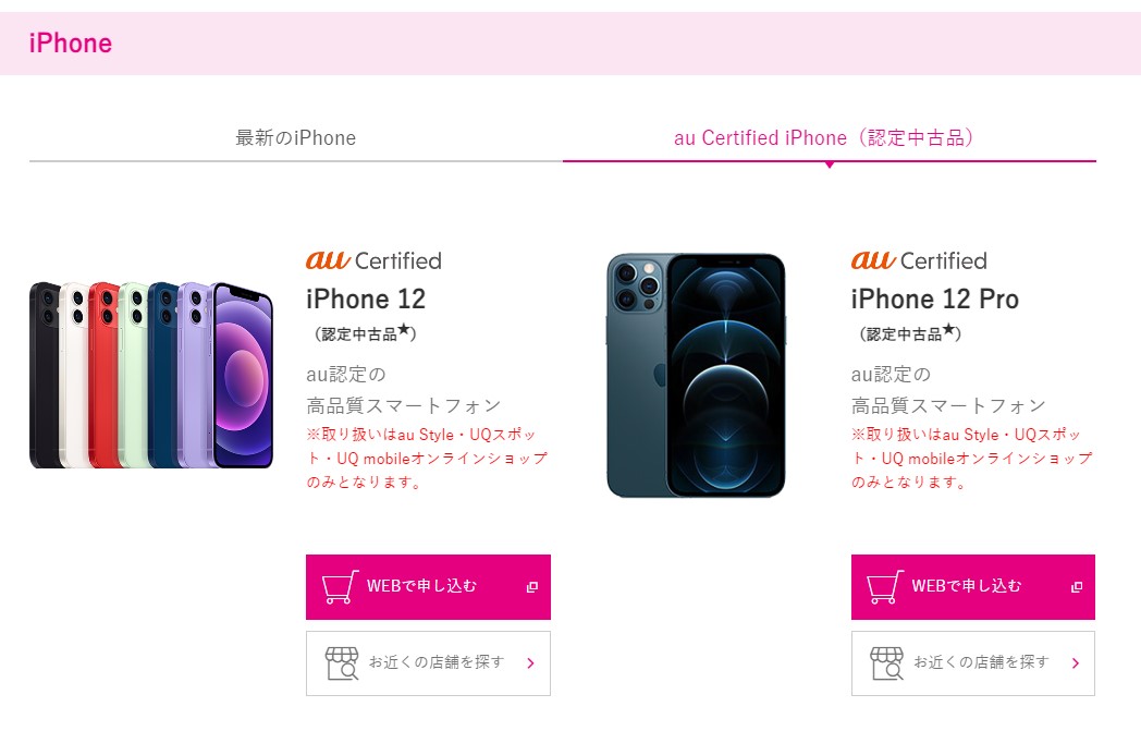 ◦ au認定中古品のiPhoneが購入できる