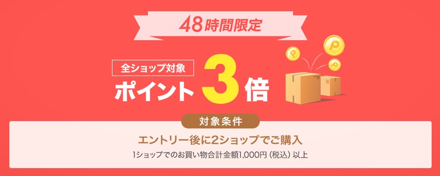 48時間限定 2ショップ購入でポイント3倍