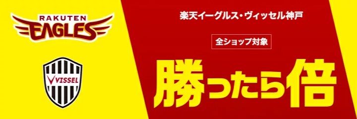 楽天イーグルスまたはヴィッセル神戸、いずれかのチームが試合で勝利した翌日、または翌々日に楽天市場での買い物でポイントがアップするイベントです。