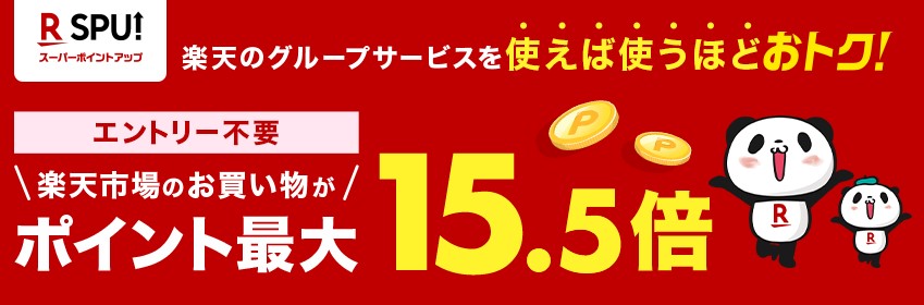 楽天グループのサービスを使えば使うほどお得になるプログラムで、楽天市場でのポイント還元率が最大15.5倍になります。