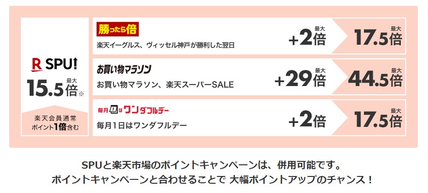 SPUは楽天市場の様々なキャンペーンと併用して使用できるので、ポイント獲得率をぐんと底上げすることができます。